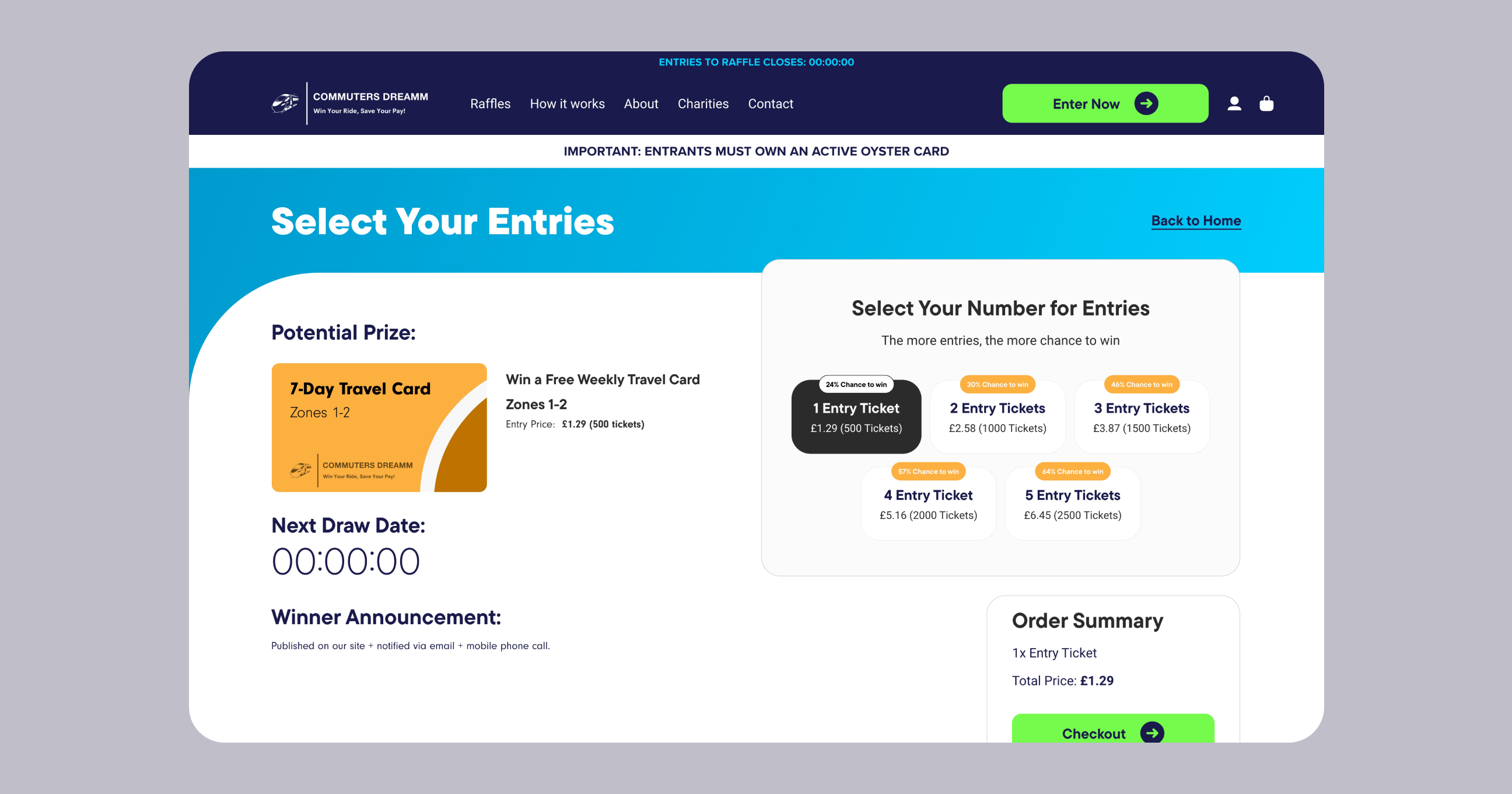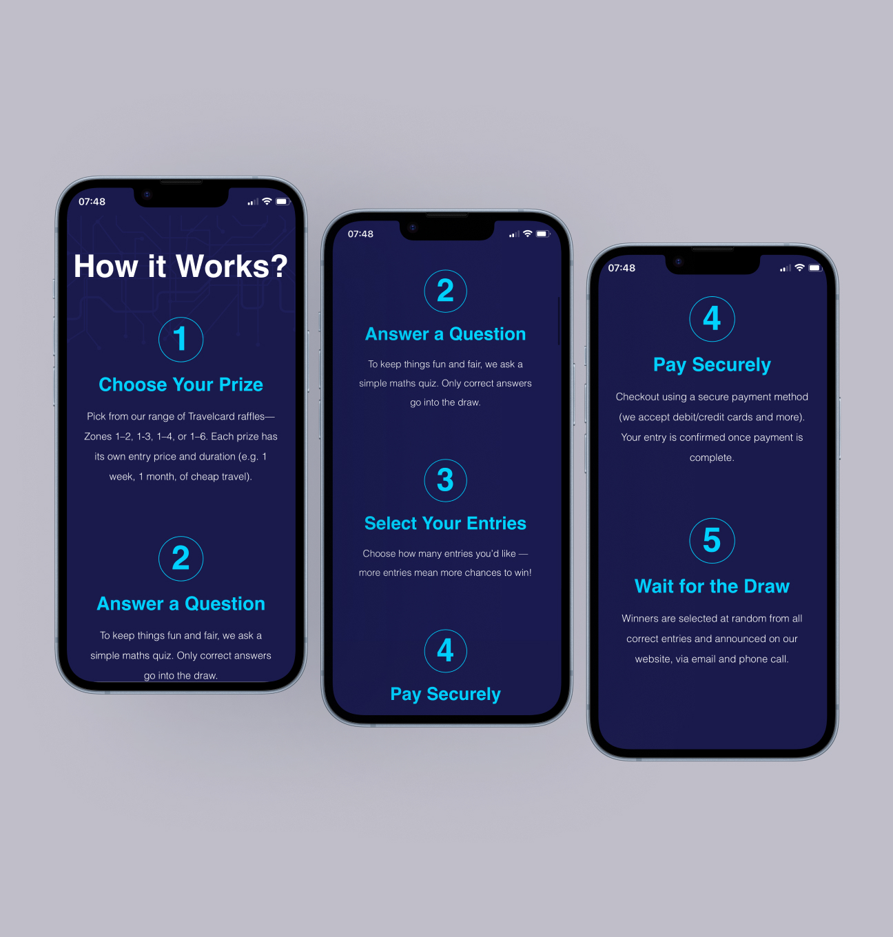 We pushed the brief by adding colour-coded raffle journeys, a small interactive entry feature, and clear charity integration to boost engagement and social impact.